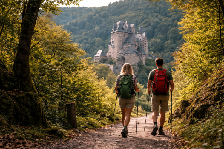 Ein Besuch der Burg Eltz lässt sich hervorragend mit einer Wanderung verbinden – ideal für alle, die gerne wandern im Moselgebiet möchten. In der direkten Umgebung verlaufen mehrere Wanderwege, die Natur, Höhenunterschiede und wunderschöne Ausblicke miteinander verbinden.