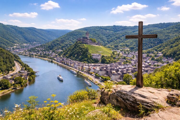 Die Cochemer Sesselbahn bringt Sie in wenigen Minuten auf den Hügel oberhalb der Stadt. Von hier aus genießen Sie einen spektakulären Blick auf Cochem, die Mosel und die umliegenden Weinberge. Ein kurzer Spaziergang führt weiter zum Aussichtspunkt Pinner Kreuz – einem der schönsten Panoramaplätze der Region.