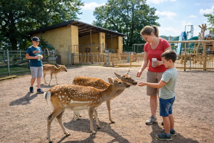 - Tiere und Natur – Hirsche, Bären, Waschbären und verschiedene Vogelarten in großzügigen Gehegen